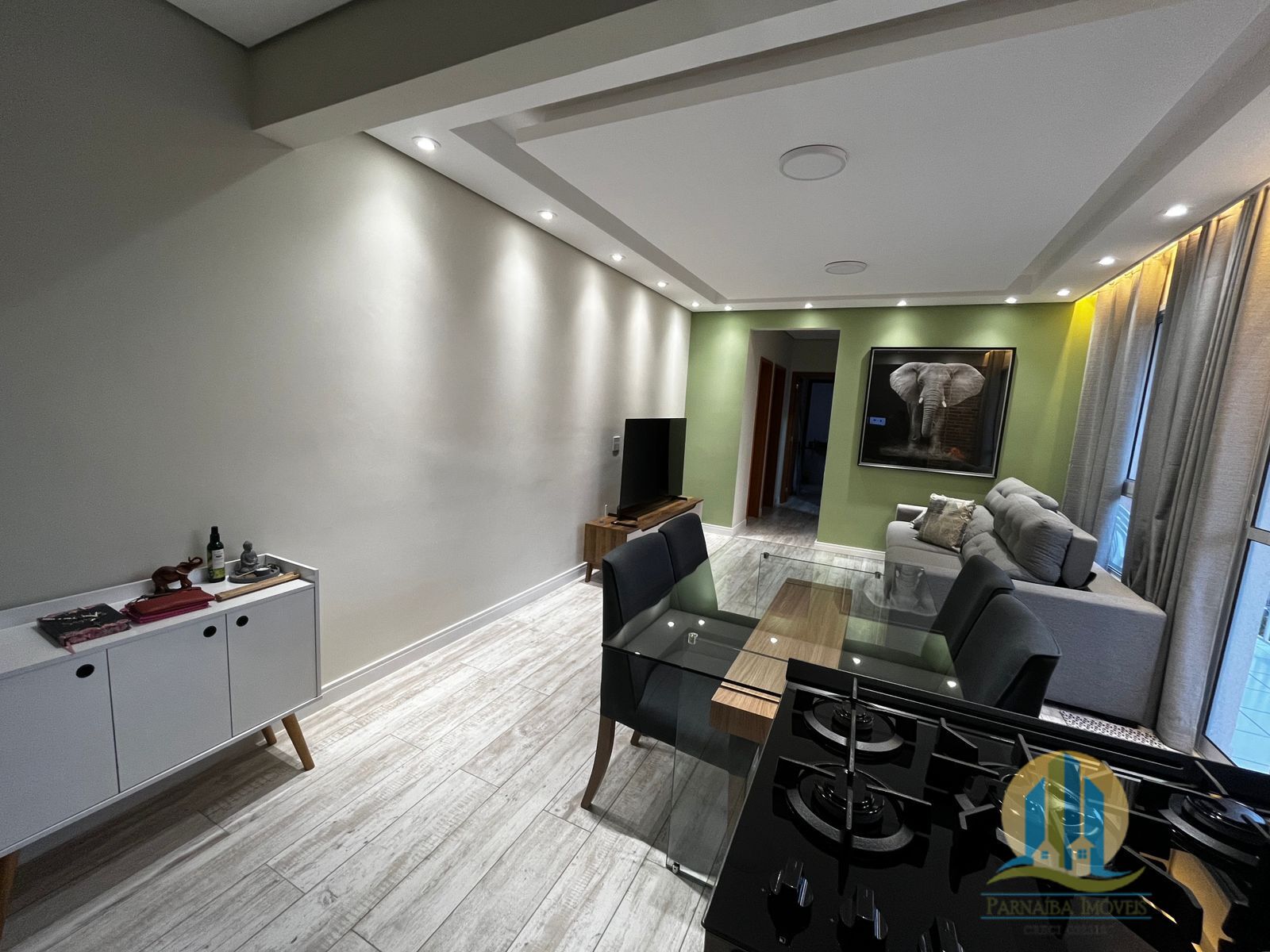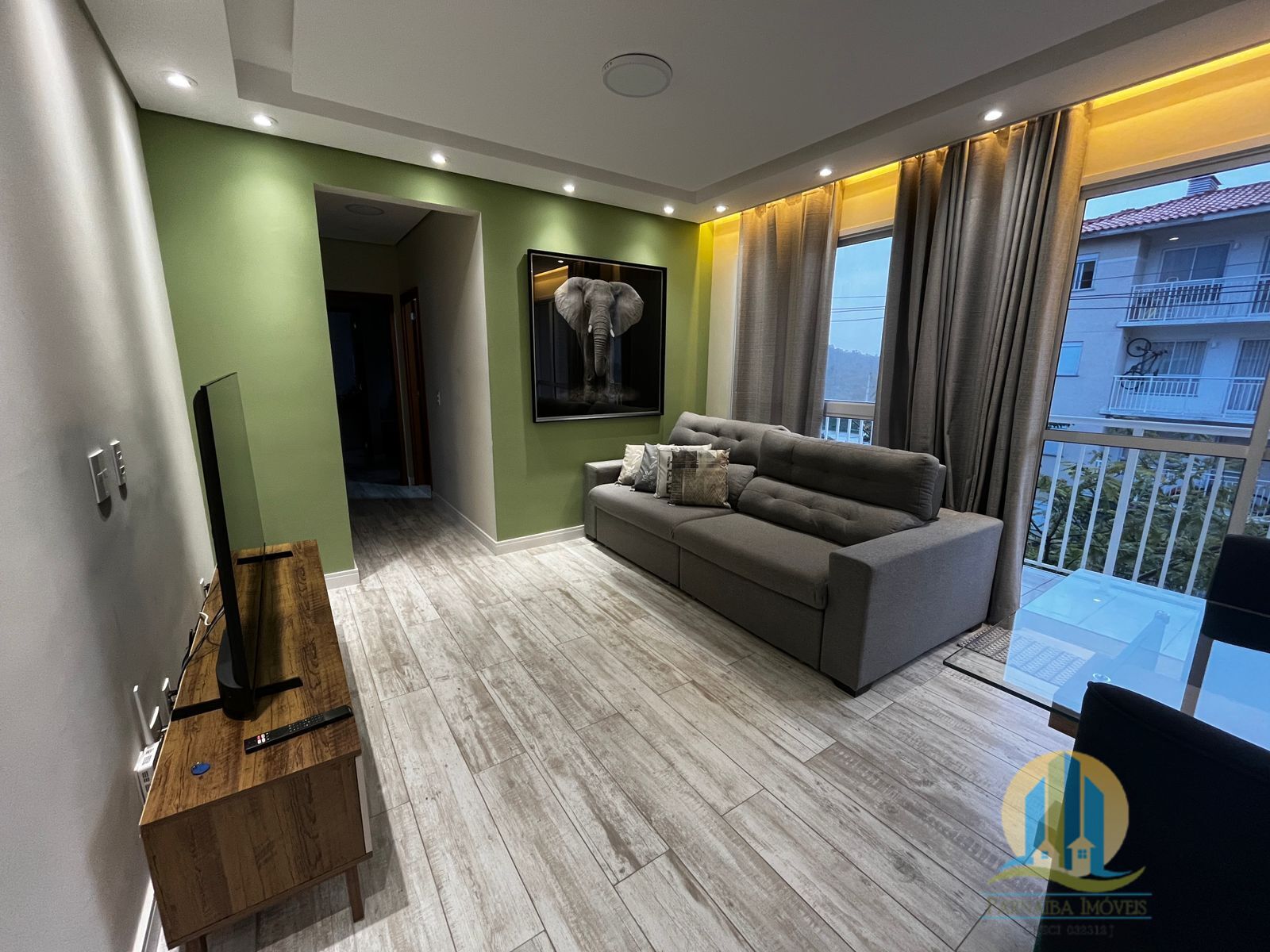 - Iluminação elegante com spots de LED e cortineiro na sala