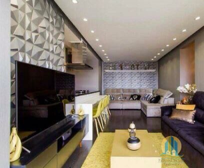 - Área Social: Conceito aberto, living ampliado para três ambientes integrado com ampla varanda e cozinha