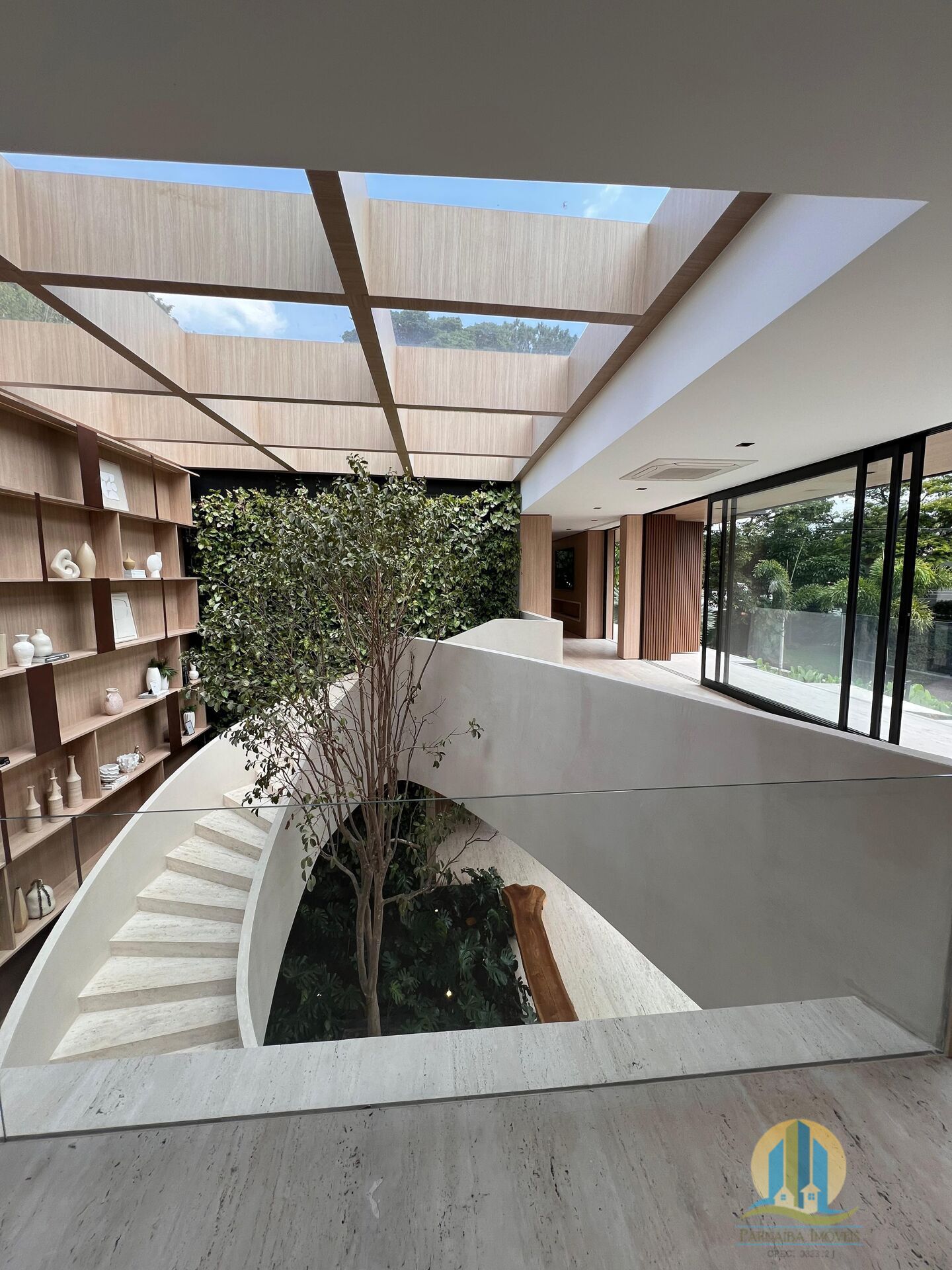 Acabamentos refinados com mármore travertino romano bruto em todos os ambientes e paredes revestidas em madeira Carvalho Batur para um toque de elegância atemporal.