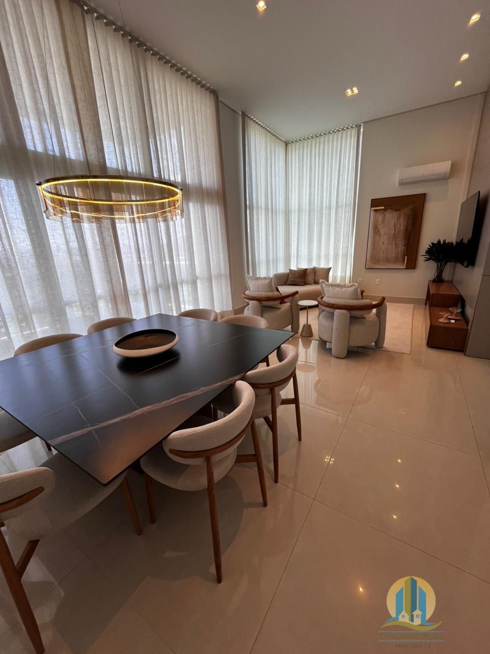- Sala de estar e jantar com mobiliário completo e iluminação sofisticada