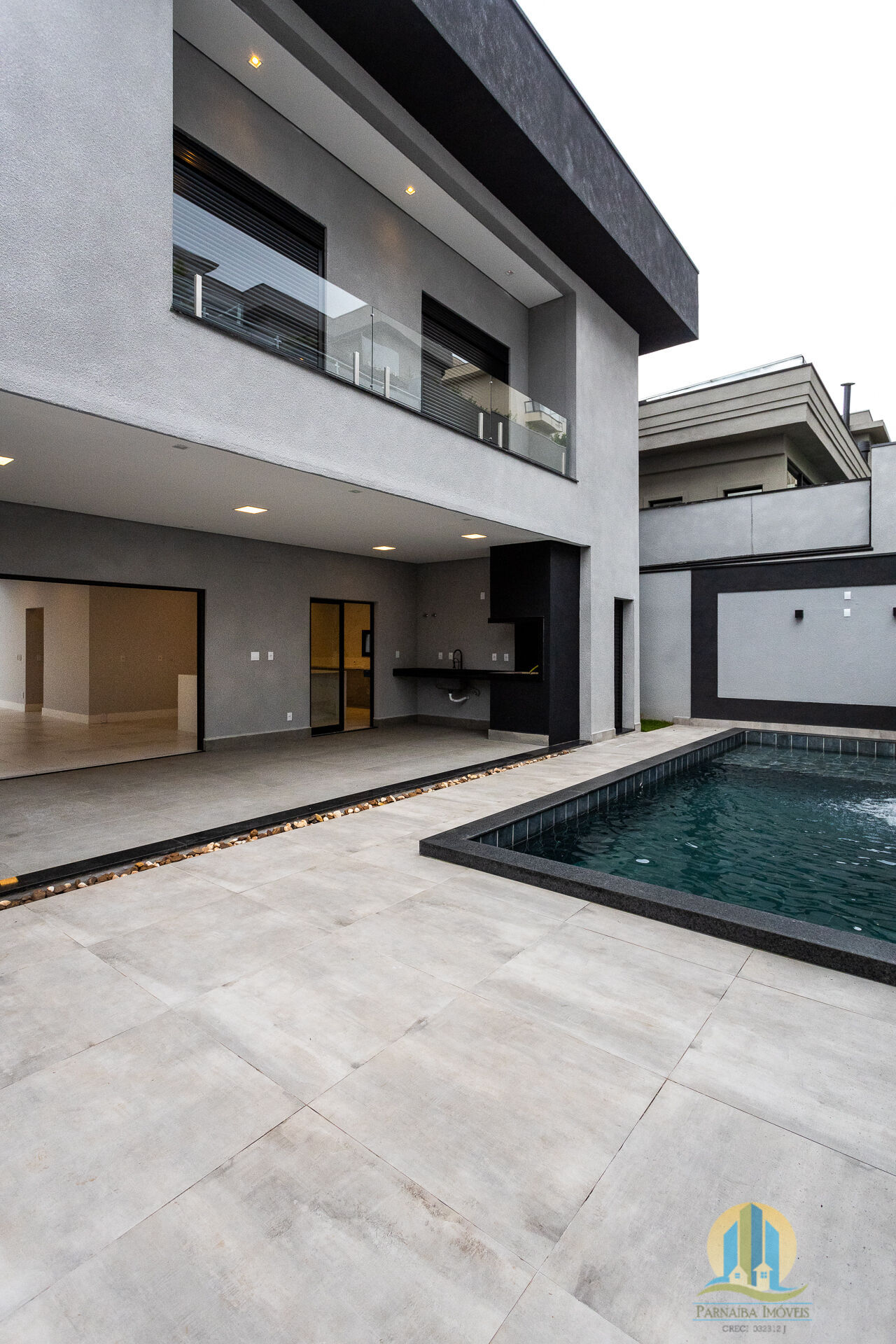 🔸 Guarda-corpo em vidro, pintura projetada, detalhes externos em fulget